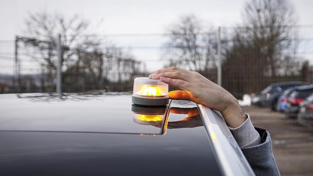 Die Warnleuchte V16 ist eine gelbe, blinkende Lichtquelle, die leicht auf dem Dach eines Fahrzeugs platziert werden kann. Sie ist so konzipiert, dass sie eine 360-Grad-Sicht aufweist und so aus großer Entfernung sichtbar ist. Die Vorteile dieser Technologie liegen in der einfachen Handhabung und der Verschmelzung moderner Technologien, wie z. B. GPS, die die Lokalisierung des Fahrzeugs erleichtert und zusätzliche Sicherheit bietet.
